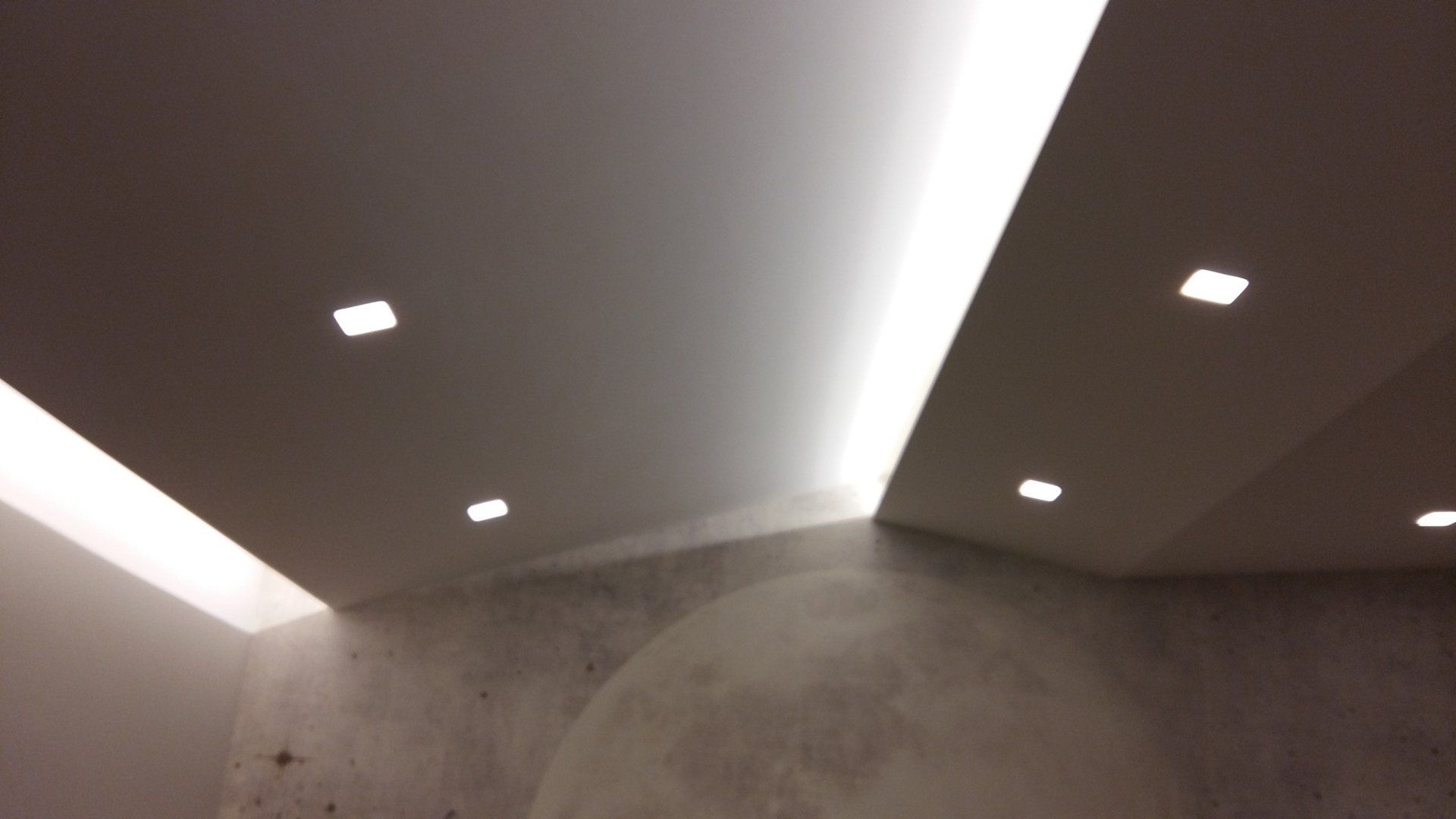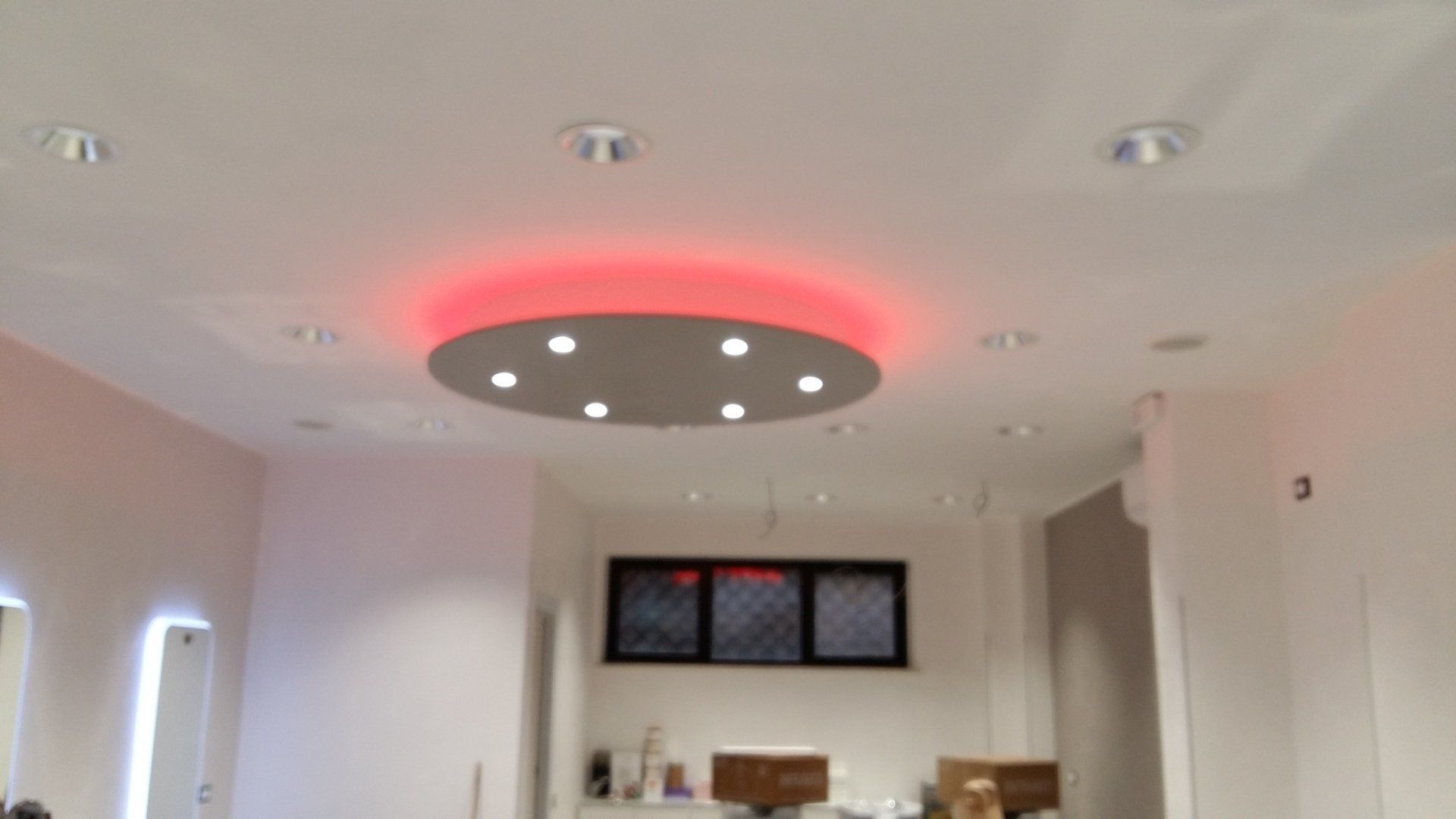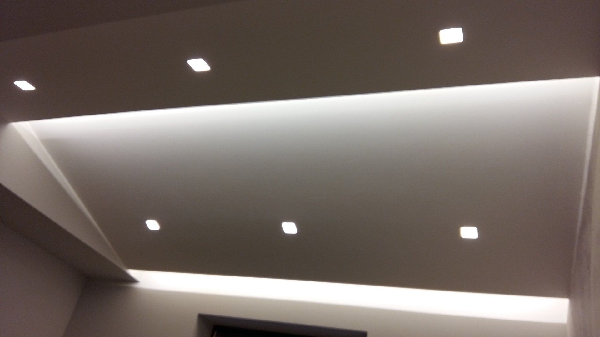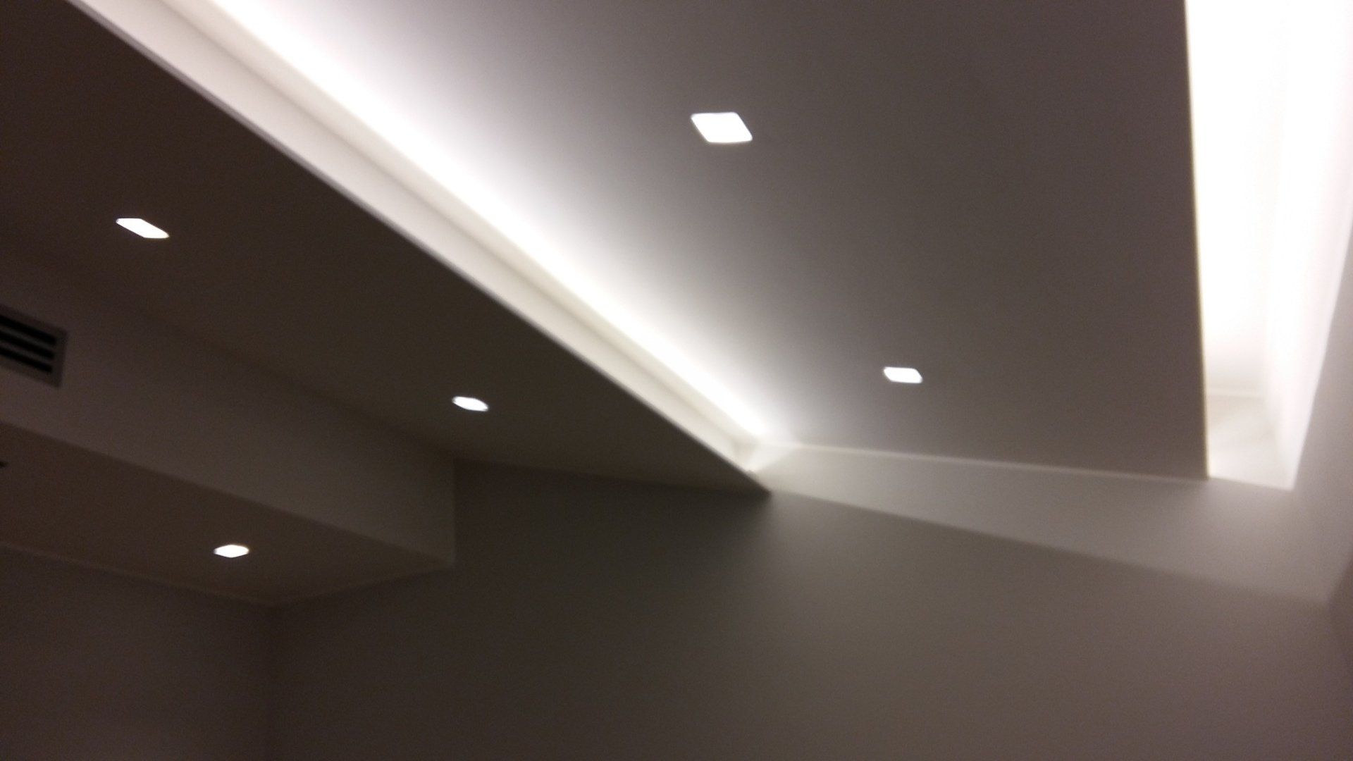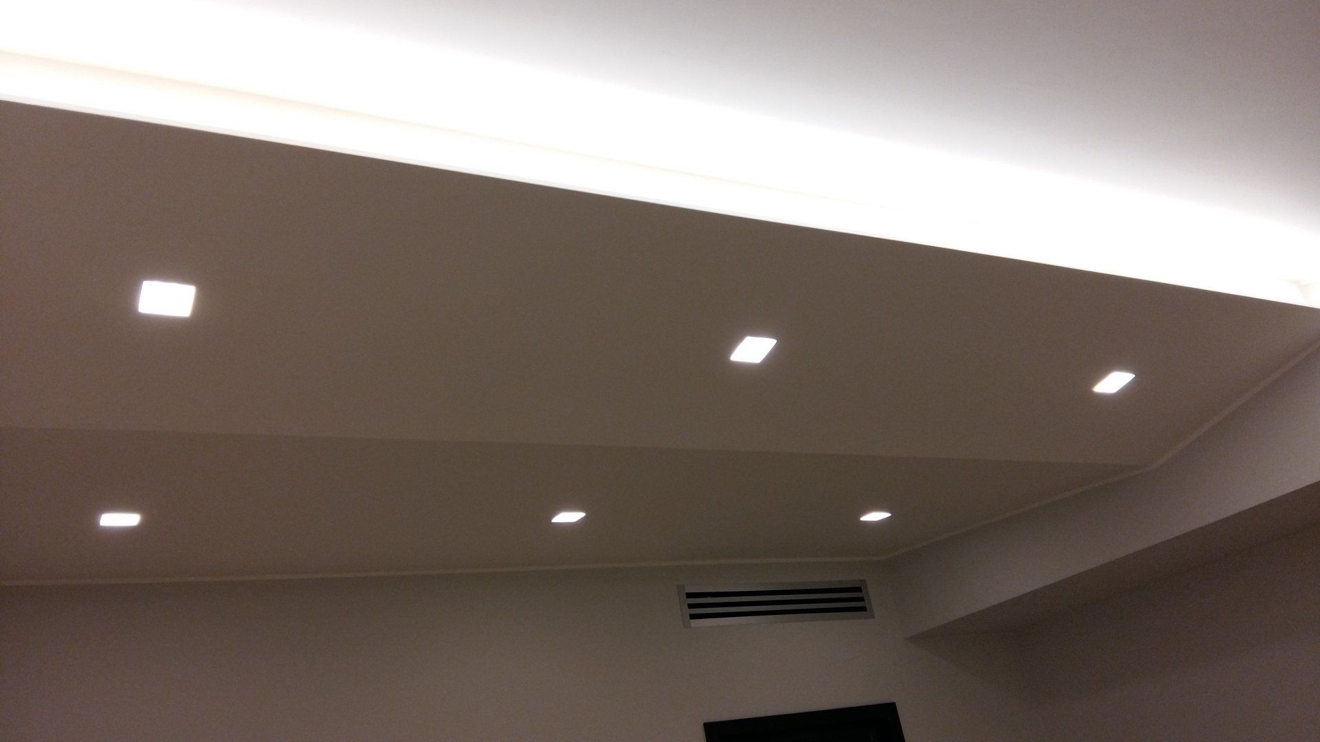 Per raggiungere questo obiettivo, Di Fortunato Controsoffitti installa, in piena integrazione con il controsoffitto, faretti in gesso di forma tonda o quadrata.